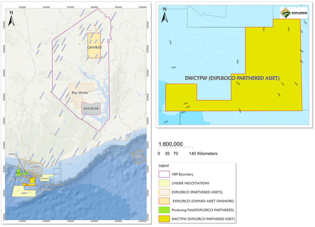 These license areas are within offshore Western basin and Eastern basins with water depths ranging between 50m – 4000m. Explorco is currently exploring in the onshore Voltaian basin.The total hydrocarbon resources from offshore blocks is estimated at about 7.1 billion barrels.