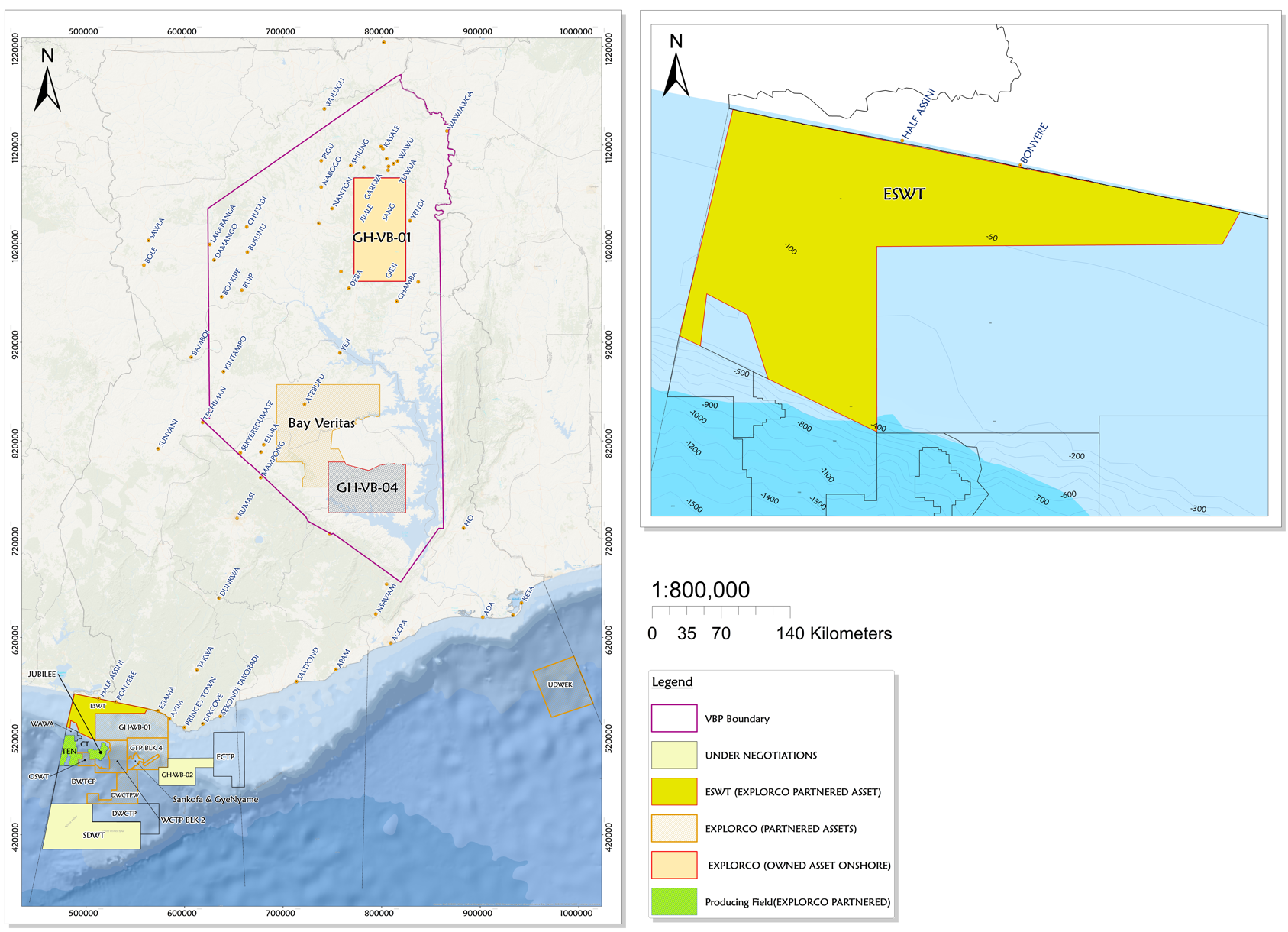 The current partnership in the ESWT Block consists of Base Energy Ghana Limited (60%, Operator), Explorco (20%), and GNPC (20%).